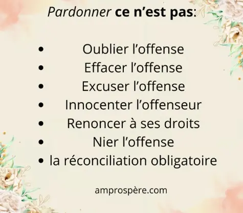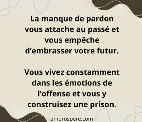 En conclusion, adopter une attitude de pardon peut ainsi transformer la vie d'une personne, tant sur le plan personnel, spirituel que relationnel.SI vous désirez aller plus loin vous pouvez lire Déjouer les pièges du manque de pardon qui vous accompagne dans le processus de la libération.