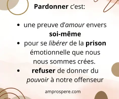 Le pouvoir du pardon est immense; il peut apporter une paix intérieure et un soulagement inexplicable. Par exemple, des études ont montré que les individus qui réussissent à pardonner éprouvent souvent une réduction notable du stress et de l'anxiété. Un acte de pardon peut également permettre à la personne de retrouver un sens de la liberté émotionnelle, lui permettant ainsi de vivre pleinement le moment présent sans l'ombre d'une rancœur persistante. En vérité, le pardon est avant tout un cadeau que l’on se fait à soi-même, une opportunité de libération personnelle qui favorise la résilience et l'épanouissement.